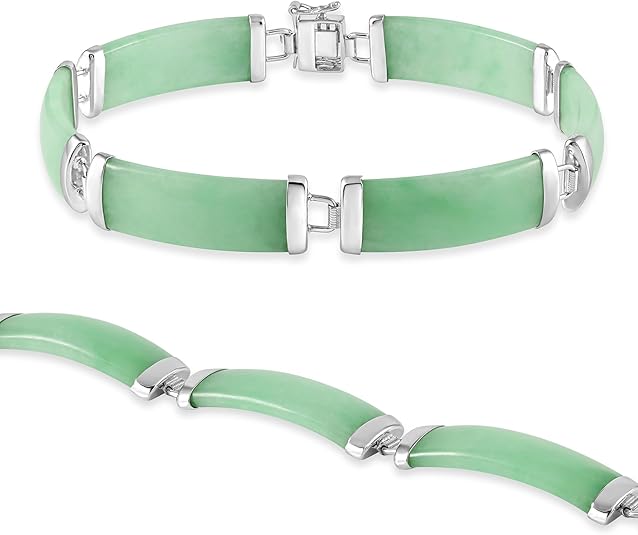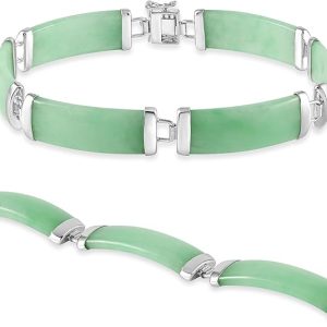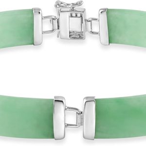 Natural Green Jade Link Bracelet in Sterling Silver, 7.5 Inches Length, Fashion Jewelry for Women, Gift Box Included