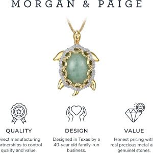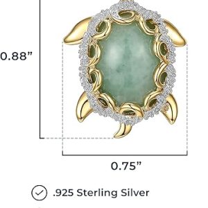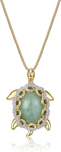 - ELEGANT GENUINE JADE & SPARKLING DIAMONDS: This sea turtle necklace for women features a vibrant jade stone surrounded by 1/10 cttw diamond accents. The combination of gold-plated sterling silver and luxurious gemstones creates a striking and meaningful pendant